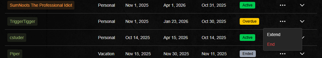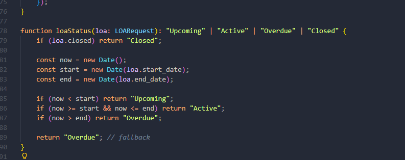 Appears there is a bug regarding data compares on the ended and extended dates for LOA's