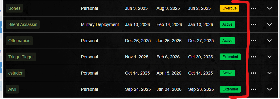 - [ ] Leave "Extend" Option for members but add tool tip to say "LOA already has been extended, contact Admin Team to Justify Further Extension.