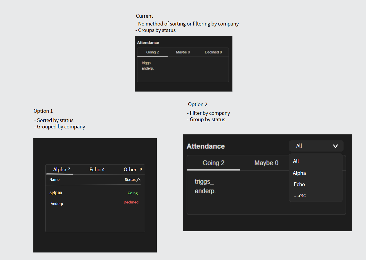 TriggerTigger: For OP planning, is there a way to have the attendance be a table with sortable columns so Alpha can sort to see all their attendance, and echo do the same to help with slotting?